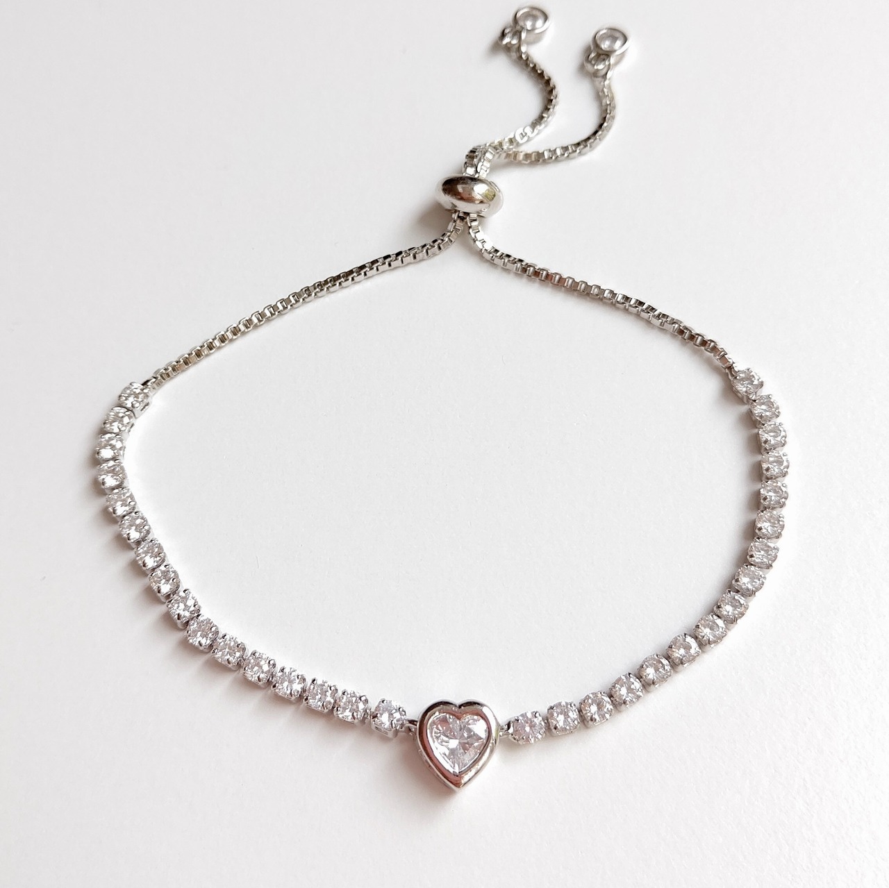 煌めくクリスタルラインストーンとキュートなハートorラウンドのブレスレット♡